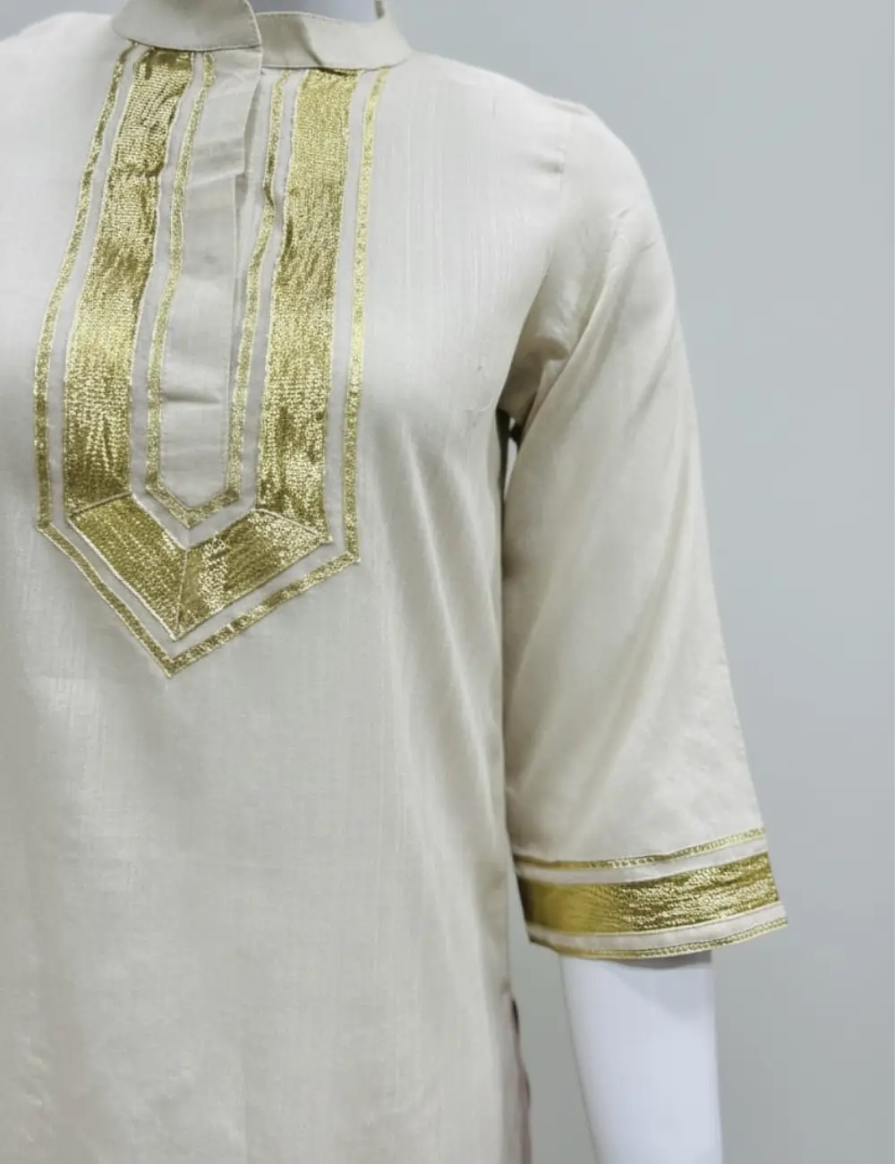 Three-quarter sleeves adorned with gota detailing on the cuffs